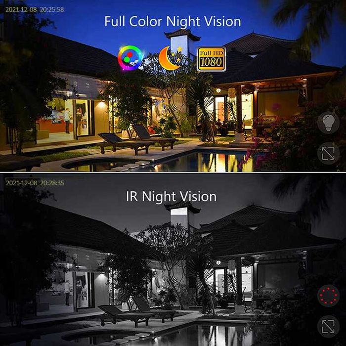 Dispune de leduri puternice capabile să vadă în întuneric complet la aproximativ 25-30 m .Opțiunea de a derula evenimentele în zilele precedente, cu un card de 128 gb se poate stoca aproximativ 30 zile de înregistrari iar în momentul umpleri cardului, camera are funcția de rescriere, datele vechi fiind înlocuite cu cele noi.