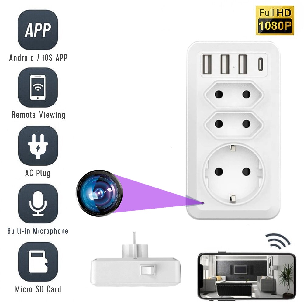 Camera Spion WiFi, TSS-C700 Ascunsa in Adaptor Priza , 3x Prize, 3x USB, 5MP Full HD, Inregistrare Audio-Video, Detectarea Miscarii ,cu Aplicatie Mobila
