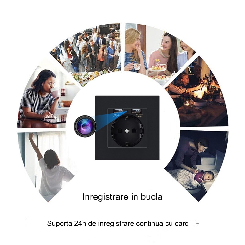 Camera Spion WIFI, TSS-PEUW-N Ascunsa in Priza, Full HD, 5MP, Inregistrare Audio-Video, Detectia Miscarii, cu Aplicatie Mobila