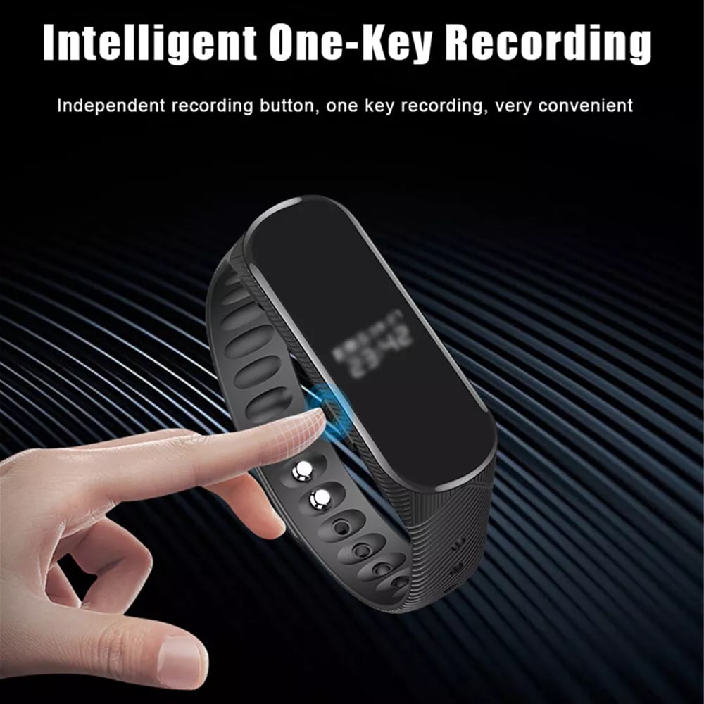 Recorder digital tip bratara/ceas cu afișare LED de 2,5 cm pentru dată și oră. Memorie încorporată de 8 Gb, baterie de 210 mAh ,20 de ore înregistrarea audio continuă. Elegant, potrivit atât pentru bărbați, cât și pentru femei, cu un reportofon de 8 GB.