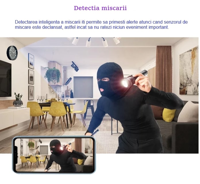 • Raza de acțiune pentru detecția de mișcare: 6 m