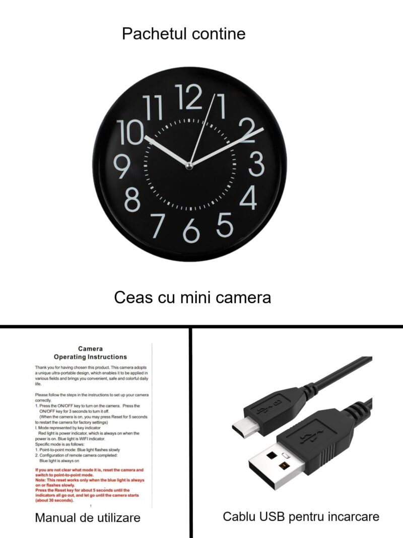 Fii primul care scrii o recenzie pentru „Ceas de Perete cu Camera Mini ,Wi-Fi, TSS-MCPN03-2 , Full HD, Inregistrare Audio-Video si Aplicatie Live , Diametru ceas de 20 cm”