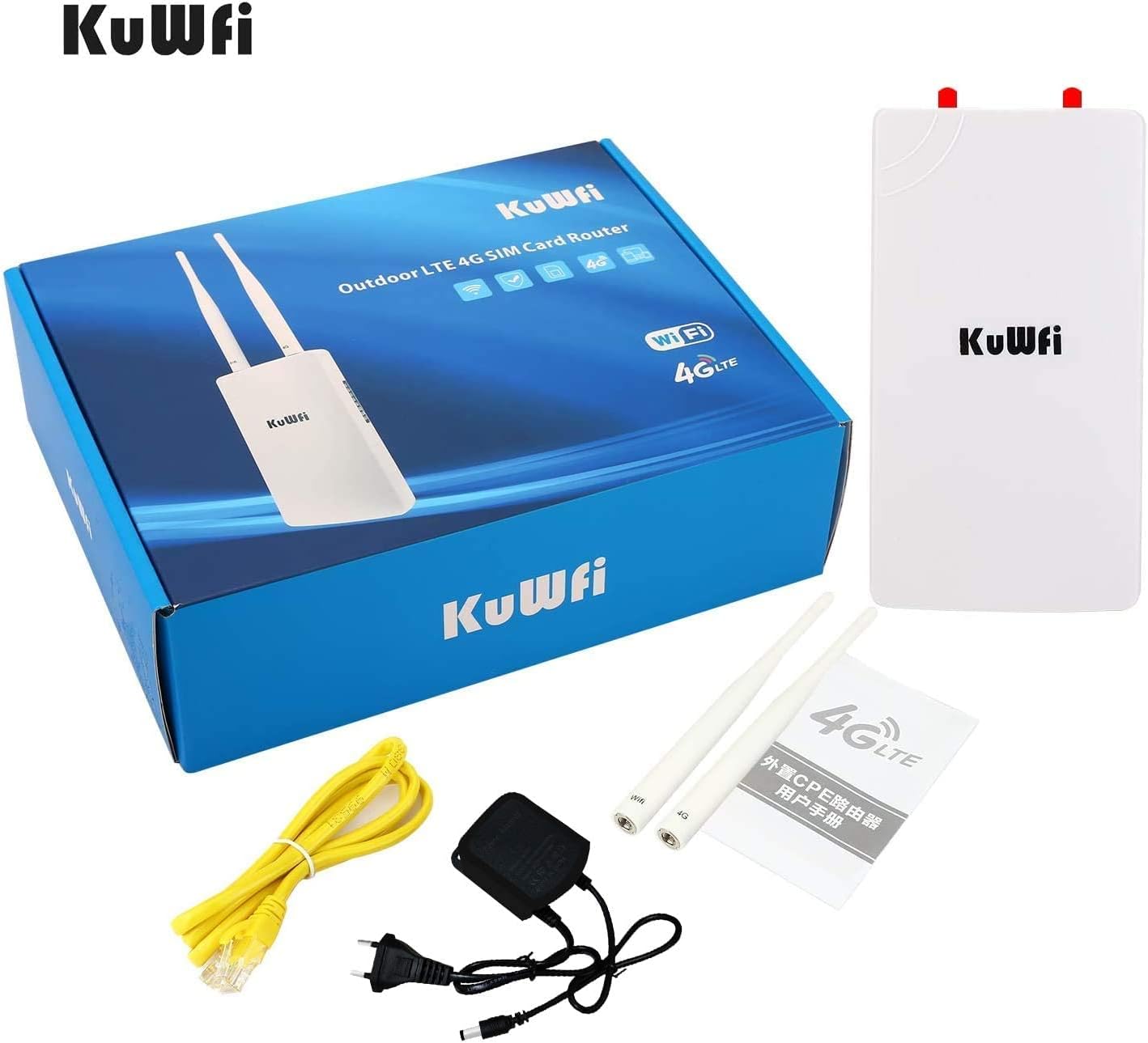 KuWFi LTE CAT4 până la 150 Mbps IP65 Impermeabil, iar viteza de transmisie fără fir este de 300 Mbps.