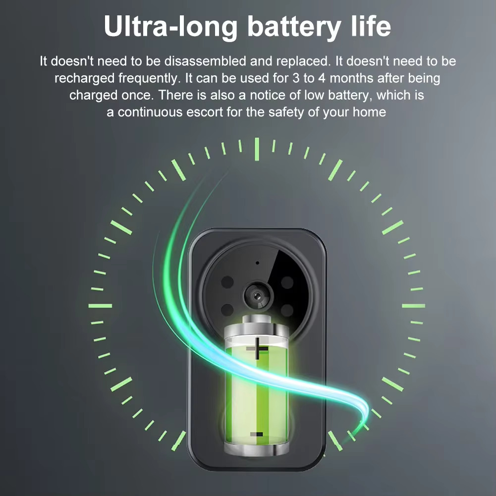 Are microfon si difuzor asadar veti putea sa discutati cu cei aflati in fata usii.De asemenea are o baterie reincarcabila incorporata mare de 800mAh astfel incat nu necesita des incarcarea.